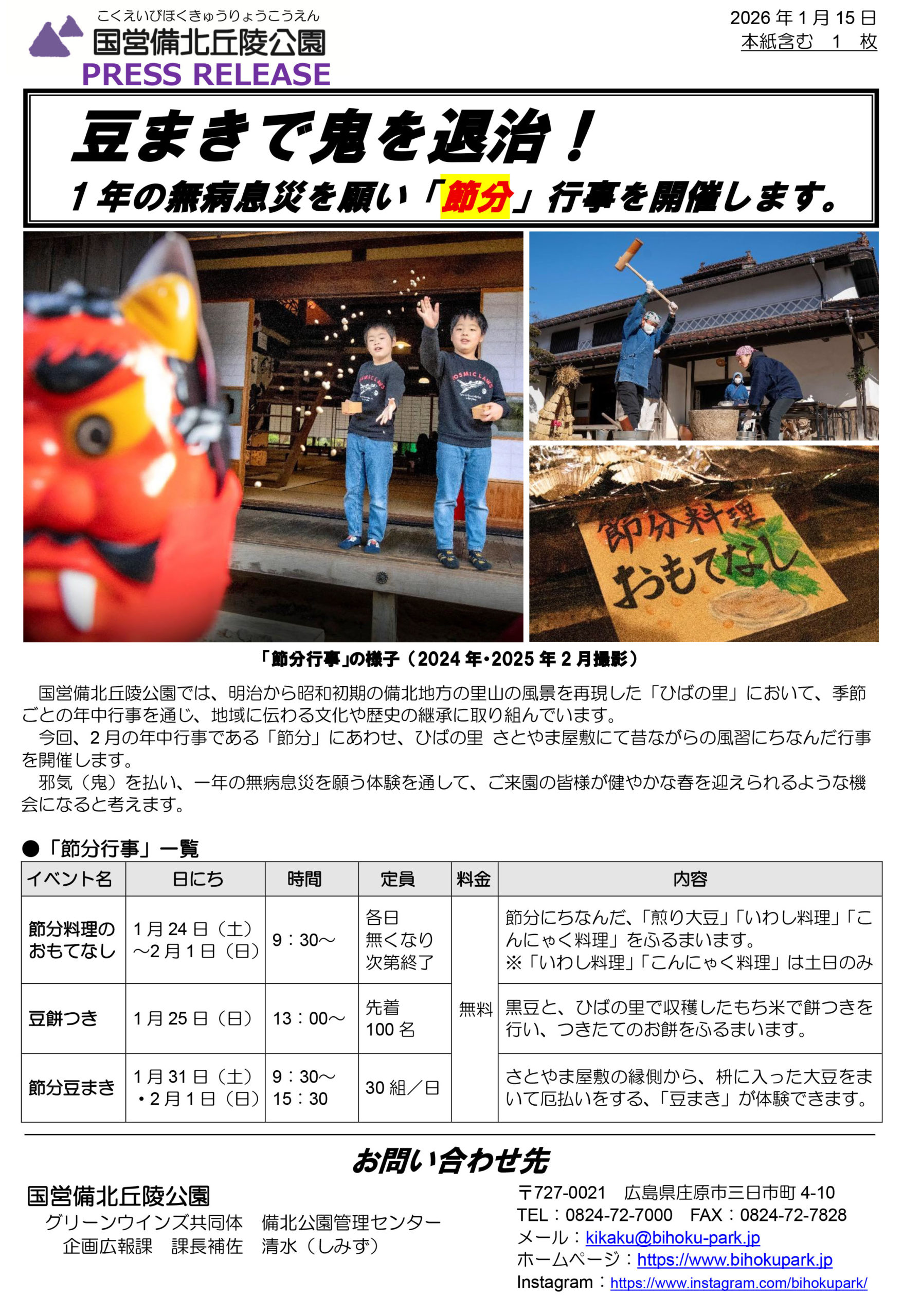 20260114プレスリリース(第4回自然観察会) 20260115プレスリリース(節分)20260114プレスリリース(第4回自然観察会)