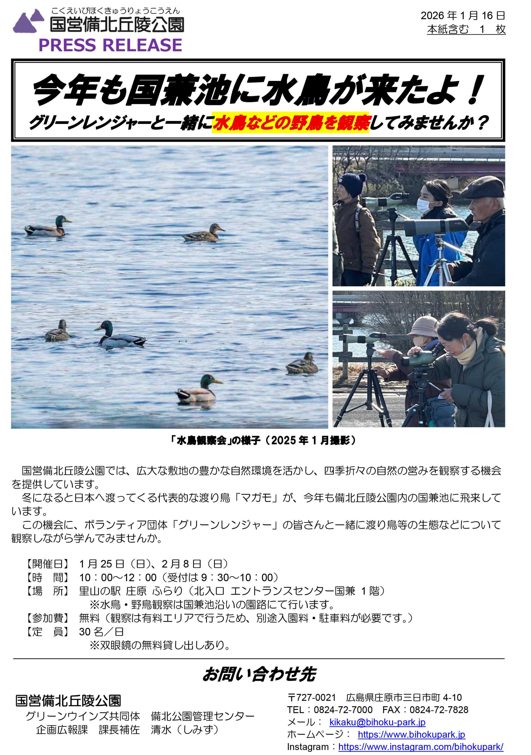 20260116プレスリリース(水鳥観察会) 20260116プレスリリース(水鳥観察会)